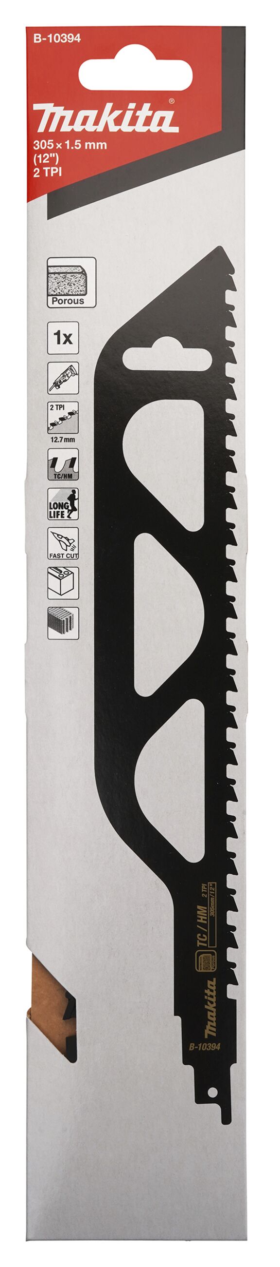 Hartmetall Verzahnung für schnelle Schnitte in hoch abrasiven Spezialwerkstoffen, z. B. Poroton, Gasbeton etc. Extra breites Blatt für winkelgerechte Schnitte bis 215 mm Materialstärke. Geeignet für Maschinen ab 1.000 Watt.