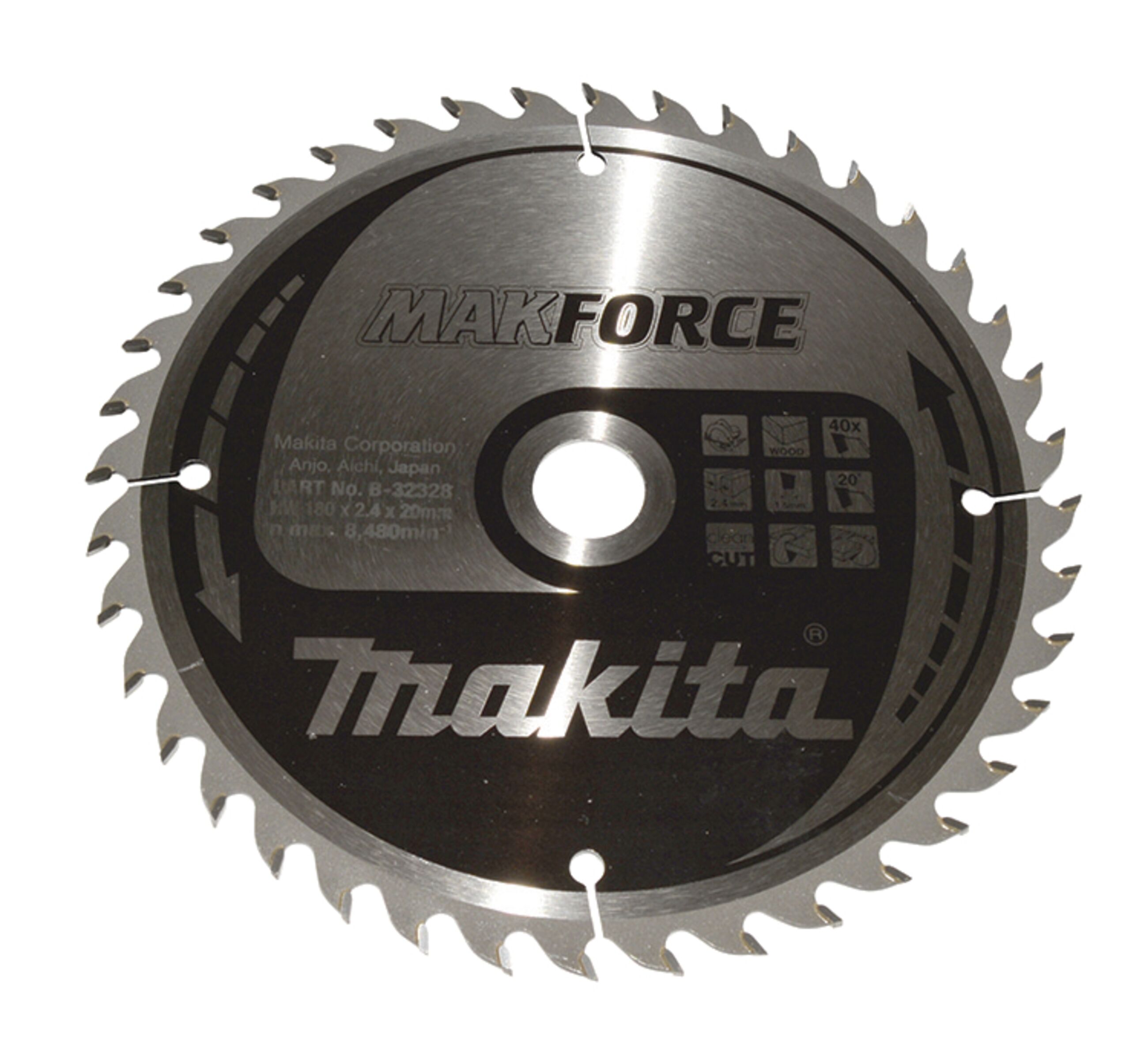 MAKFORCE - vielfältig und langlebig Sägeblatt;180 mm Bohrung;20 / 15,88 mm Inkl. Reduzierring;1 Schnittbreite;2,4 mm Zähnezahl;40 Zahnwinkel;20C° Zahnform;Makforce VPE;1