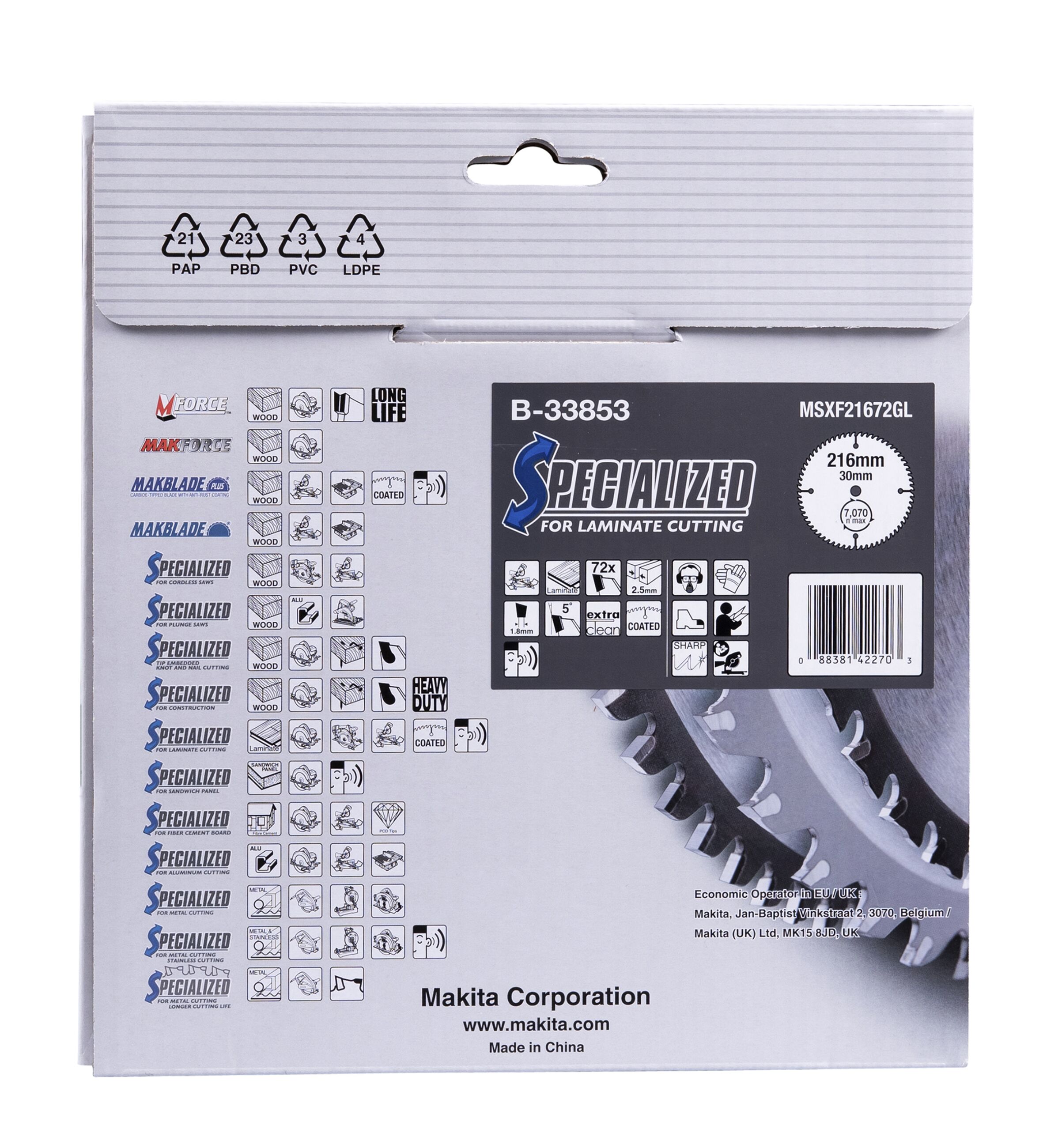 Makita B-33853 SPECIALIZED Sägeb.216x30x72Z