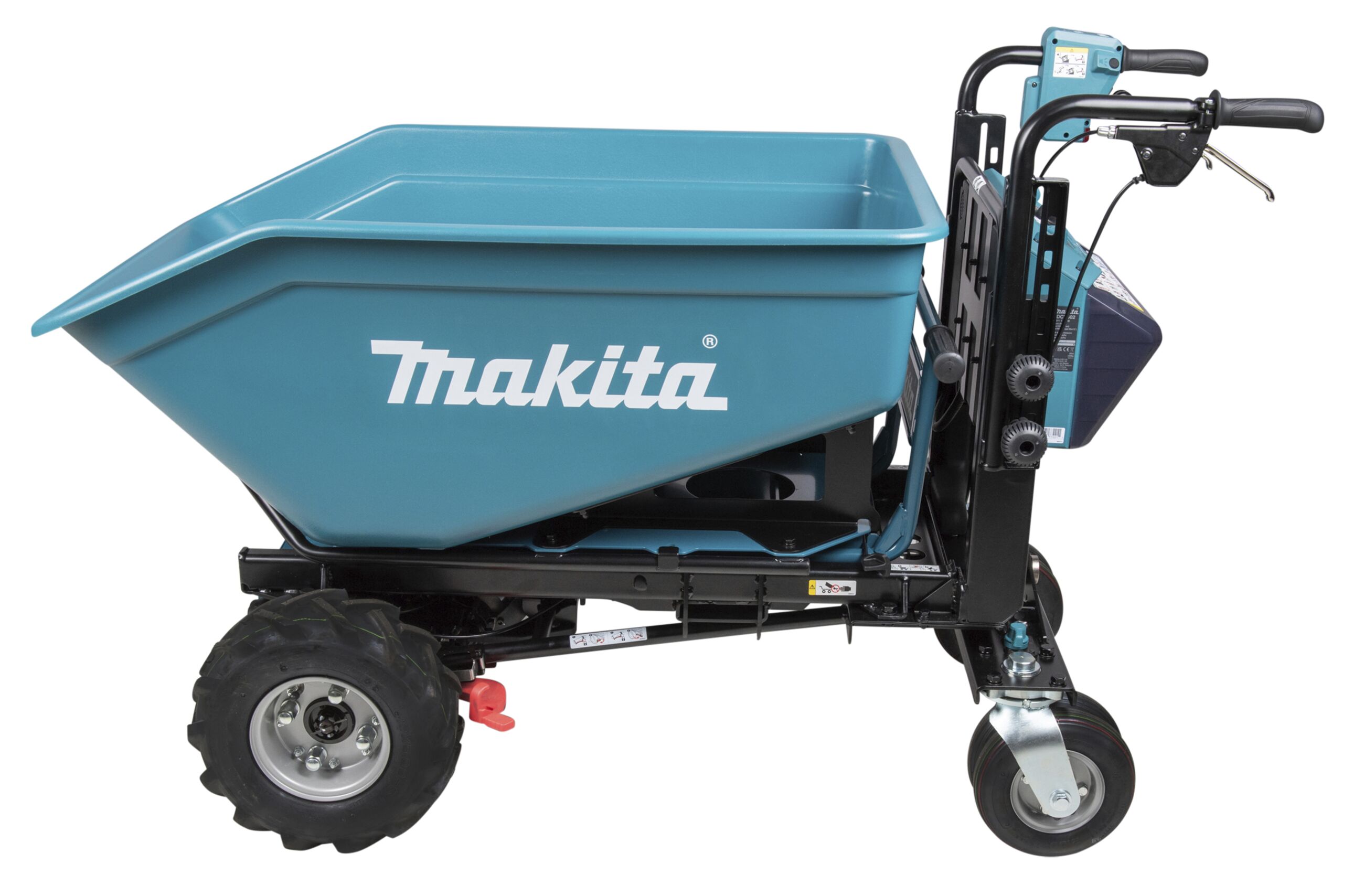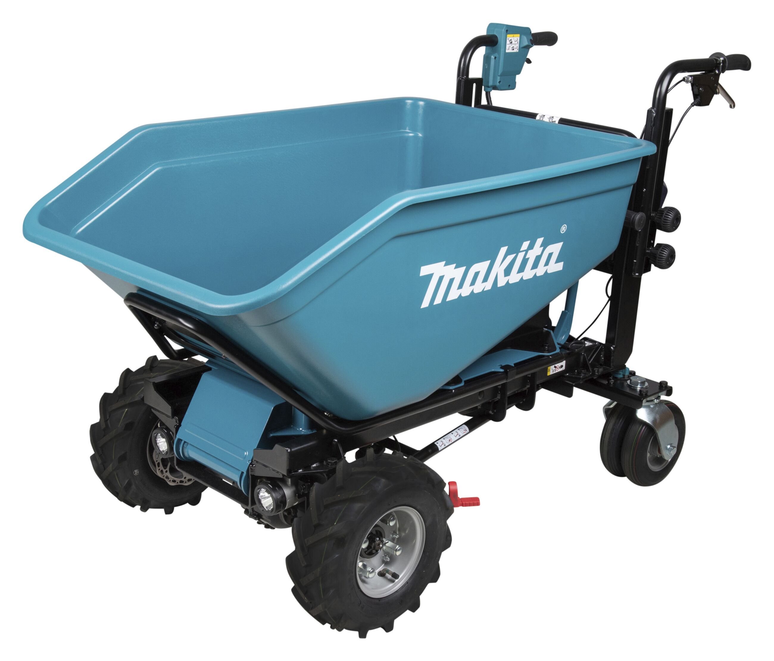 Eine Akku-Schubkarre mit 2x18 V Antrieb zum einfachen Transport von Lasten auf der Baustelle und im GaLaBau