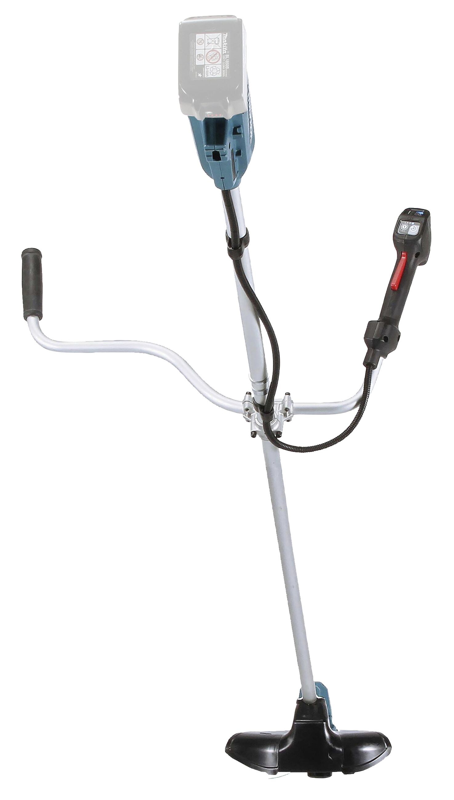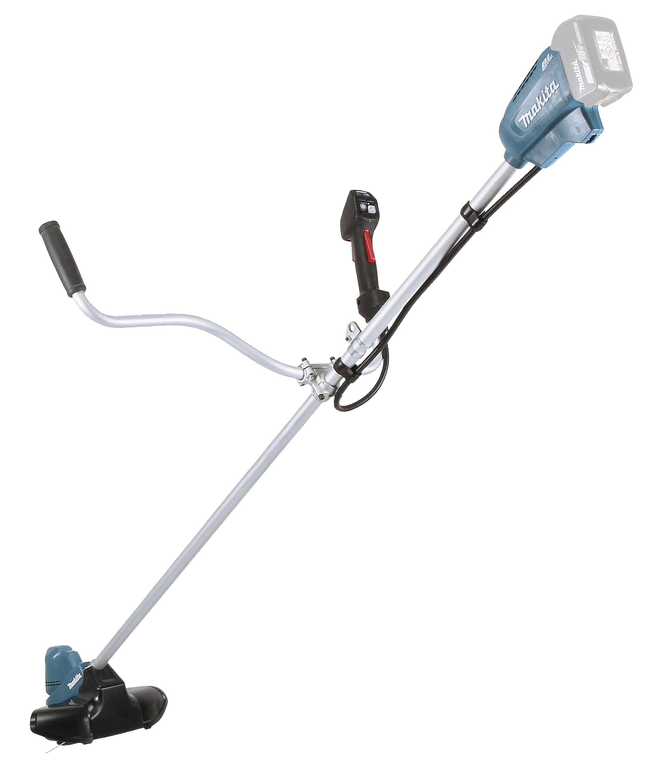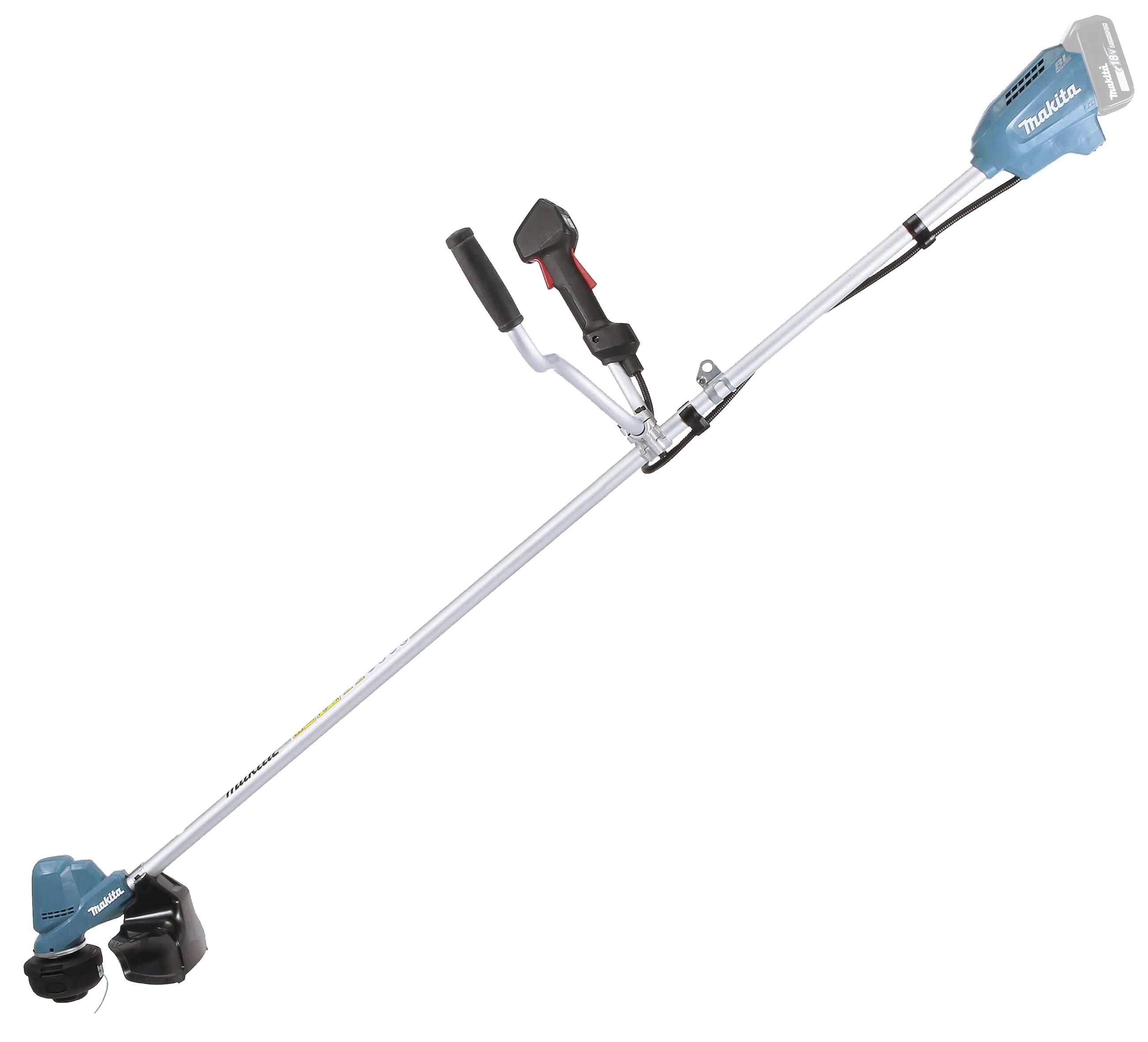 Akku-Rasentrimmer mit automatischer Drehzahlregulierung in drei Stufen. Zum Trimmen von Grünflächen. Mit Zweihandgriff.