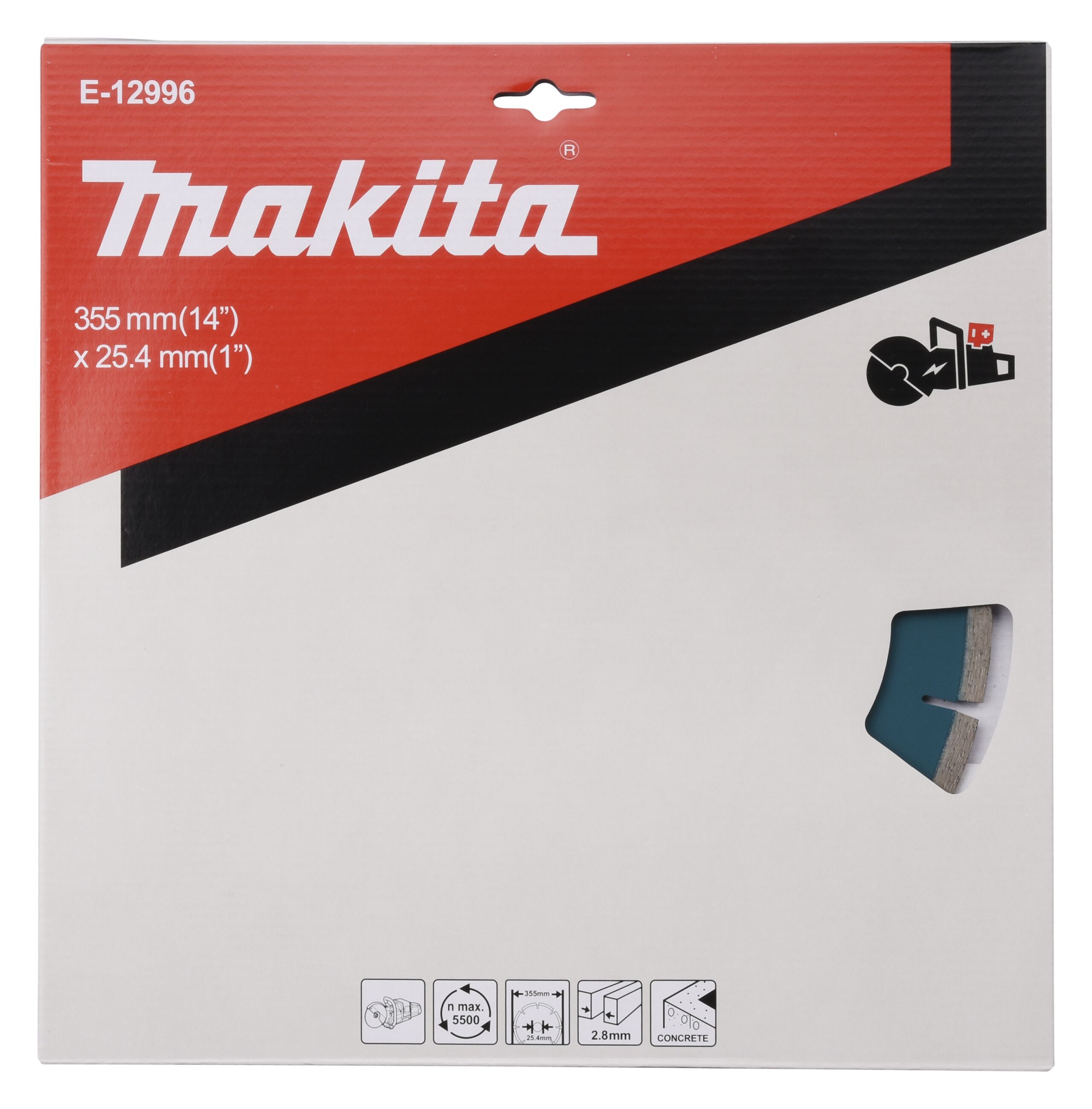 Diamantsegmenttrennscheibe speziell für Akku-Trennschleifer entwickelt Durchmesser ;355 mm Bohrung;25,4 mm Stärke ;2,8 mm Segmenthöhe;8 mm Max. Schnitttiefe;127 mm