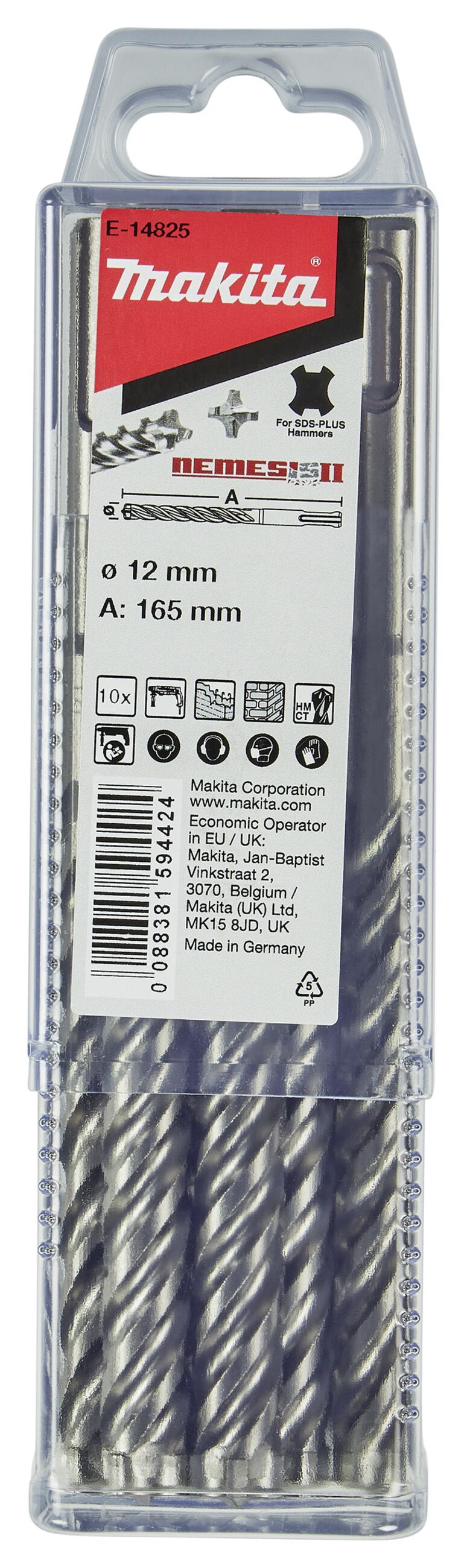 Vierschneidiger HM Bohrer NEMESIS II D 12,0 mm mit einer Gesamtlänge von 165 mm und SDS-PLUS-Aufnahme Durchmesser ;12,0 mm Länge;165 mm Arbeitslänge;100 mm VPE;10