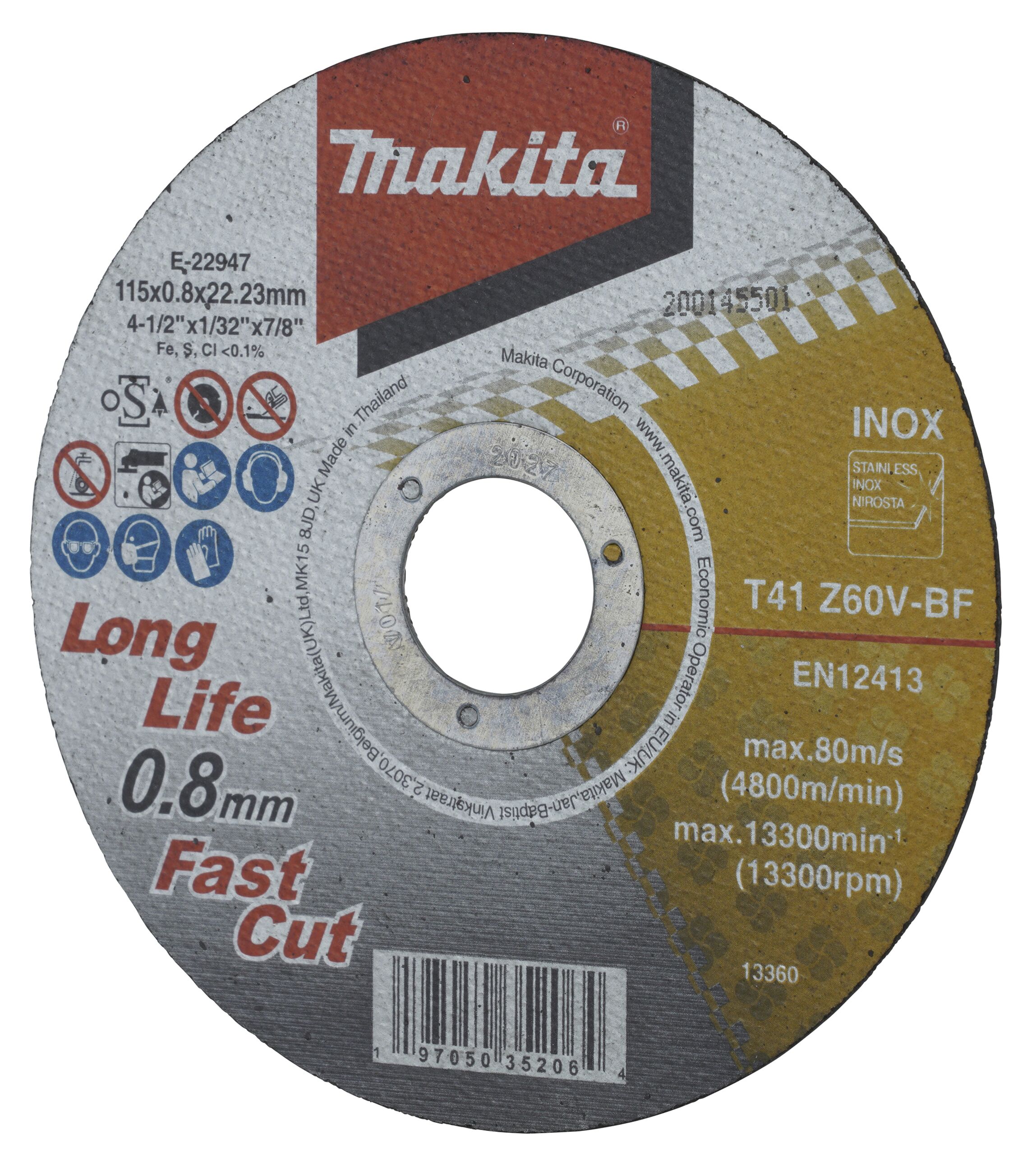 Trennscheiben INOX speziell entwickelt für eine längere Lebensdauer in Verbindung mit Akku-Maschinen Durchmesser ;115 mm Stärke ;0,8 mm Bohrung;22,23 mm VPE;12 Körnung;Z60V Typ;41
