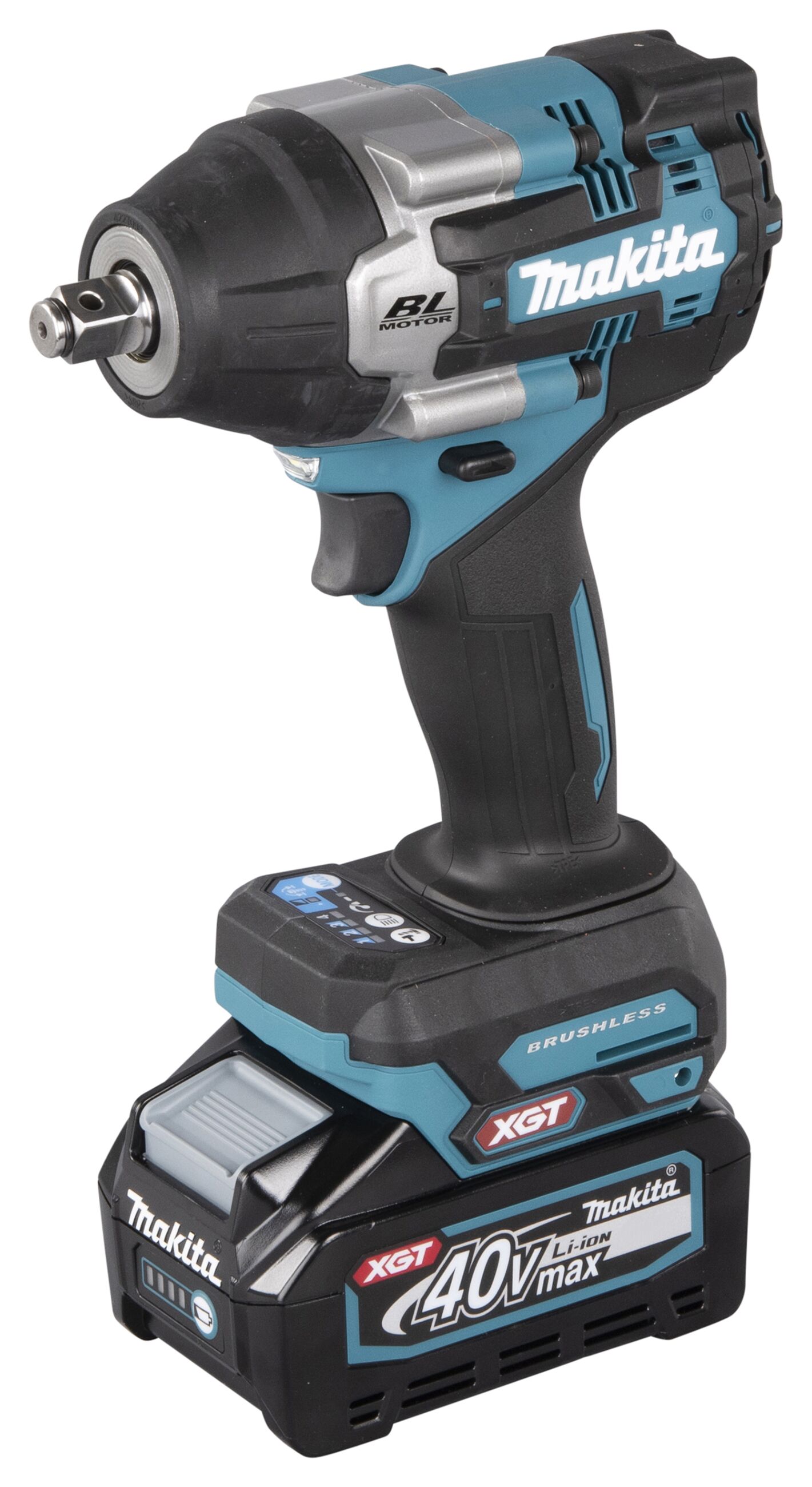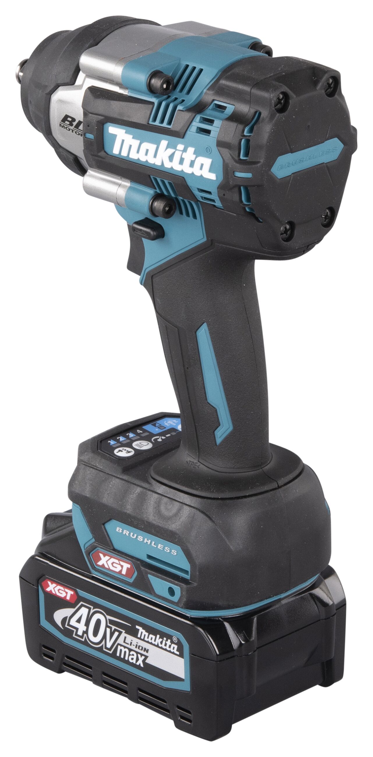 Bürstenloser Akku-Schlagschrauber mit 1/2"-Außenvierkantaufnahme mit Sicherungsstift für hohe Drehmomente, vier Schraubmodi einstellbar